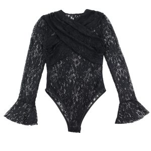 Mesh theme design sexy see though bodysuit one piece thong tops for ladies long sleeve one piece bodysuit mesh women clothing hot