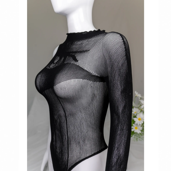 • Mesh theme design Sexy Fishnet Girl Wear lingerie Long Sleeve Diamonds Bodycon Dress Bodystocking