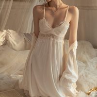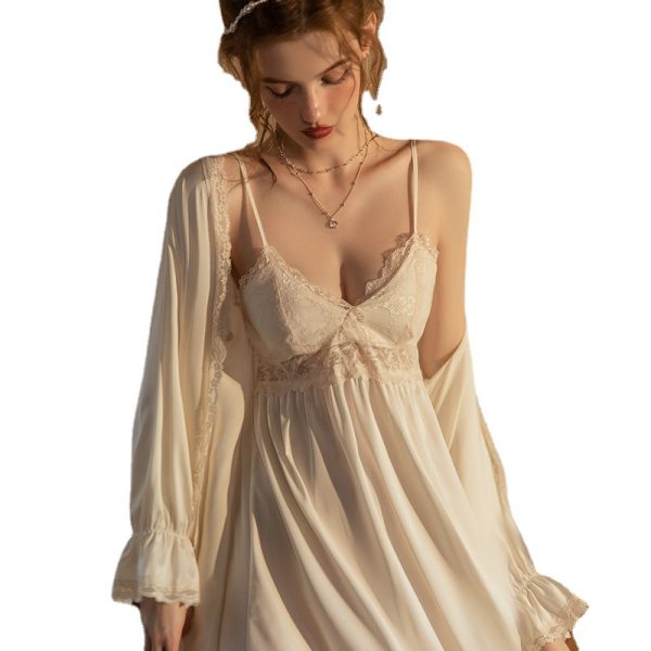 Pure natural herbal dyeing Women’s Nightgown Set Sexy V Neck 2 Piece Set Lingerie Nightgown with Robe Sleepwear Set Lace Suspender Nightgown