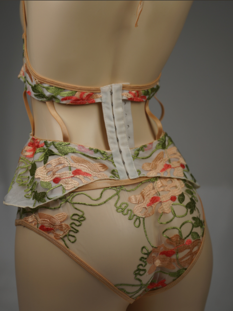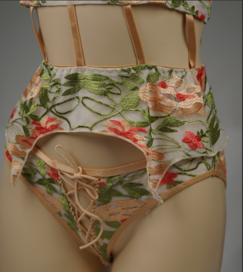 Original design themed on the 60th anniversary of the establishment of diplomatic relations between China and France Embroidered Waist Tie Panty Set