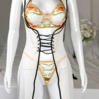 • Original design themed on the 60th anniversary of the establishment of diplomatic relations between China and France Women’s floral embroidered mesh bra thong underwear set