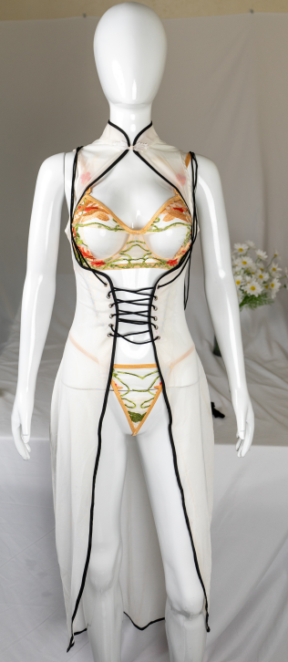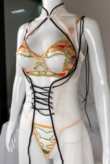 Original design themed on the 60th anniversary of the establishment of diplomatic relations between China and France Hot sale embroidered underwear transparent robe set